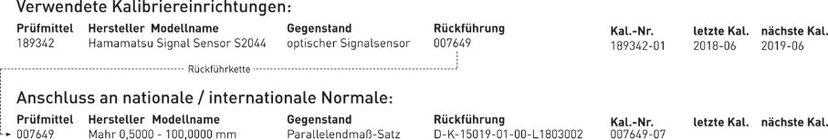 DAkkS-akkreditierte Kalibrierungen gehören zum Standard in vielen Branchen. Die esz AG calibration & metrology verfügt über eine Akkreditierung als Kalibrierlabor nach DIN EN ISO/IEC 17025:2018. Seit über 45 Jahren kalibrieren wir Ihre Messgeräte herstellerunabhängig nach standardisierten Prozessen und unter Einhaltung aller aktuellen Normen. Das Kalibrierzertifikat enthält alle Daten, Funktionen und Spezifikationen eines Prüfmittels und ermöglicht die Nachvollziehbarkeit der Kalibrierergebnisse durch Kollegen, Kunden oder bei Audits. Bei der esz AG weisen ISO-Kalibrierungen die gleiche lückenlose Rückführung, Vorgaben und Qualitätsmerkmale wie DAkkS-akkreditierte Kalibrierungen auf. Denn wir unterscheiden weder bei den Messverfahren und Messreihen, noch bei den Prozeduren und Anforderungen zwischen DAkkS- und ISO-Kalibrierzertifikaten. Ein deutlicher Mehrwert für Sie. Das Kalibrierzertifikat erhalten Sie schnell und unkompliziert zusammen mit Ihrem Messgerät. Sie selbst entscheiden, ob Sie das Kalibrierzertifikat digital als pdf-Dokument oder als Papierdokument möchten. Dabei setzt die esz AG trotzdem auf nachhaltigen Umweltschutz: Das gedruckte Kalibrierzertifikat enthält als Kurzübersicht die Informationen zum Kalibriergegenstand und -verfahren, die Umgebungs- und Messbedingungen, den Ort der Kalibrierung, Informationen zu den Messunsicherheiten und die Auswertung über die Lage der Messwerte innerhalb oder außerhalb der Spezifikation. Ihr vollständiges Kalibrierzertifikat, inklusive detaillierter Messwerte, erhalten Sie in digitaler Form als pdf über unser Kalibrierzertifikatportal oder Ihren asset expert-Zugang. Zusätzlich bieten wir auch digitale File-Formate wie VDI 2623 oder DCC für Ihr Kalibrierzertifikat an. Sicherheit und Vertrauen sind unsichtbar. Mit der Kalibriermarke von esz nehmen diese Schlüsselbegriffe für Qualität und Verlässlichkeit aber Gestalt an: Nach der Kalibrierung erhält jedes Messgerät eine Kalibriermarke. Diese enthält neben der eindeutigen Kalibrierzertifikatnummer, dem Kalibrierdatum und dem Datum der nächsten Kalibrierung auch einen QR-Code, der Ihnen, Ihren Anwendern und Ihren Auditoren die Arbeit mit Ergebnissen und Messwerten vereinfacht. Der verschlüsselte Code kann mit jedem Smartphone, Tablet oder einem entsprechenden Handscanner gelesen werden. Sie haben innerhalb von Sekunden Zugriff auf das jeweilige Kalibrierzertifikat des Messgerätes als PDF-Dokument. Der QR-Code ermöglicht nur den Zugriff auf das Kalibrierzertifikat des Messgerätes, nicht aber das Lesen oder Ändern aller Daten des Prüfmitteleigentümers. esz-Kalibrierzertifikate enthalten neben grundlegenden Informationen wie Kalibriergegenstand und -verfahren, Umgebungs- und Messbedingungen, Ort der Kalibrierung und Informationen zu den Messunsicherheiten weitere wichtige Details: DIN EN ISO/IEC 17025 konform: Das esz Qualitätsmanagementsystem erfüllt alle Anforderungen der DIN EN ISO/IEC 17025:2018. esz-Kalibrierzertifikate sind nach den Kriterien aus Abschnitt 7.8 der Norm gegliedert und aufgebaut. Werkskalibrierungen im vollen DAkkS-Umfang: Egal ob es sich um eine ISO-/ Werkskalibrierung oder um eine DAkkS-akkreditierte Kalibrierung handelt: Kalibrierverfahren, Messreihen, Qualität und Kalibrierumfang werden bei der esz AG nicht unterschieden. Werkskalibrierungen wickeln wir in demselben Umfang und unter denselben Bedingungen ab, wie akkreditierte Kalibrierungen. Die Leistungen unterscheiden sich lediglich durch das Deckblatt des Kalibrierzertifikats und das Akkreditierungssymbol. Statt vereinfachten Intervallen der Umgebungsbedingungen enthalten esz Kalibrierzertifikate die Echtzeitmesswerte von Temperatur, Luftfeuchtigkeit und Luftdruck, die während der Kalibrierung im esz-Labor genau gemessen wurden. Neben dem Akkreditierungssymbol garantiert das esz-Kalibrierzertifikat mit der Darstellung der ununterbrochenen Rückführkette der Prüfmittel und Kalibriereinrichtungen die metrologische Rückführbarkeit auf das SI-Einheitensystem bzw. auf die messtechnischen Referenzen. Über die sogenannte „ILAC-Auswertung“ (ILAC = International Laboratory Accreditation Cooperation) werden in esz-Kalibrierzertifikaten die festgelegten Entscheidungsregeln und deren Messschrittkennzeichnung festgelegt (im Beispiel in Rot jeweils nicht in Übereinstimmung mit den Spezifikationen): Jeder Messschritt wird auf das spezifische Risiko der Konformitätsaussage geprüft (Konformitätsprüfung). Sechs Fälle können in der Spalte „Bemerkung“ auftreten: | 1: Untere Spezifikationsgrenze | 2: Eingriffsgrenze | 3: Kalibrierwert | 4: Messwert inkl. Messunsicherheit | 5: Obere Spezifikationsgrenze | 6: Normiertes Toleranzfeld | Die Messschritte werden grafisch als Zeilendiagramm dargestellt. Damit ist auf den ersten Blick erkennbar, ob und wie gut die Toleranzen des Prüflings relativ zum Sollwert eingehalten werden. Neben der Konformitätsaussage über die Übereinstimmung mit den Spezifikationen enthalten esz-Kalibrierzertifikaten umfangreiche Daten und Begriffe, wie – %rdg: Prozent vom Messwert (reading = Anzeige) – D: Digit (niederwertigste Stelle der Anzeige) – FS: Full Scale (Bereichsendwert) – ppm: parts per million (10-6) – ppb: parts per billion (10-9) – rdg: reading (Anzeige) Wir erstellen Ihnen gerne ein unverbindliches Angebot für die Kalibrierung Ihrer Messgeräte. Wir erstellen Ihnen gerne ein unverbindliches Angebot für die Kalibrierung Ihrer Messgeräte. Der Code besteht aus einer 128-Bit-starken GUID (Global Unique Identifier) mit über 3,4· 10^38 (entspricht einer 34 mit 37 Nullen) möglichen Kombinationen (zum Vergleich: Die Anzahl der möglichen Kombinationen beim Lotto 6-aus-49 beträgt etwa 3,4 · 107). Neben der hohen Sicherheit gibt es aber noch einen weiteren Unterschied im Vergleich zur Gerätekennzeichnung anderer Kalibrierlabore: Der QR-Code ermöglicht nur den Zugriff auf den Kalibrierschein des Messgerätes, nicht aber das Lese